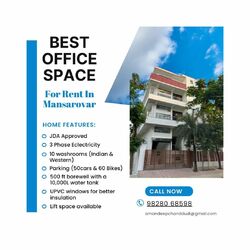 Step into a well-designed commercial space for rent in Mansarovar, Jaipur, created for businesses that value comfort, convenience, and credibility. This property stands out for its clean surroundings, greenery, wide parking area, and a peaceful working environment with zero traffic noise—rare to find in a commercial zone.